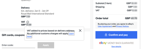 Mikor ki akarom fizetni, az eBay hozzáadja a VAT-ot, valamint kiírja hogy egyéb vámköltségek már nem lesznek: