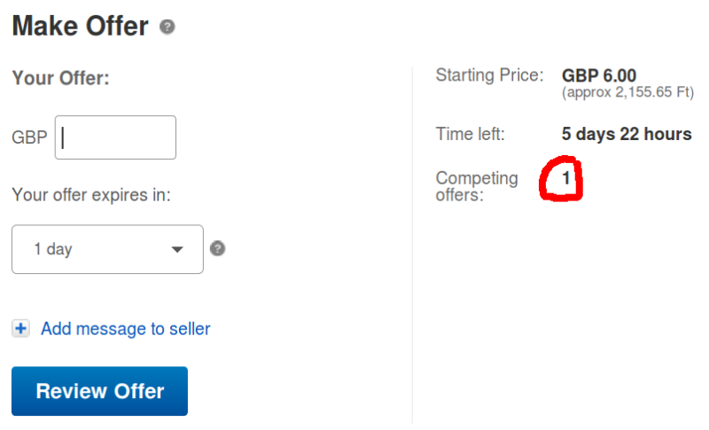 eléggé megszeretném venni a cuccot, mert régóta vadászom, csak nem tudom, hogy ilyenkor mi történik ha teszek egy ajánlatot, tudok mellette licitálni is?