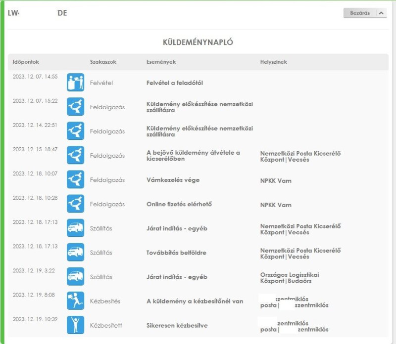Amerikából rendeltem, nem eBay, LW DE számmal jött, 399Ft + Áfát fizettem érte. Így néz ki az út Houston, TX, USA-ból indult.
