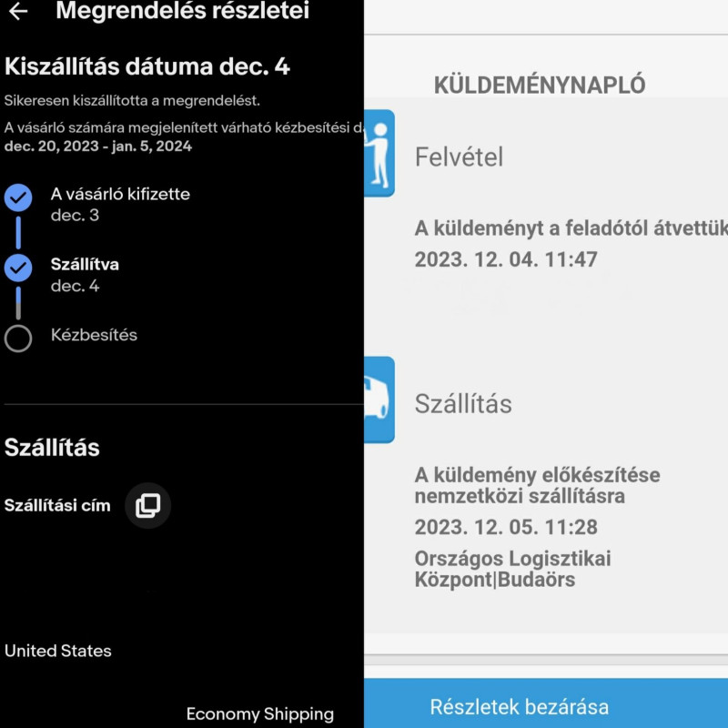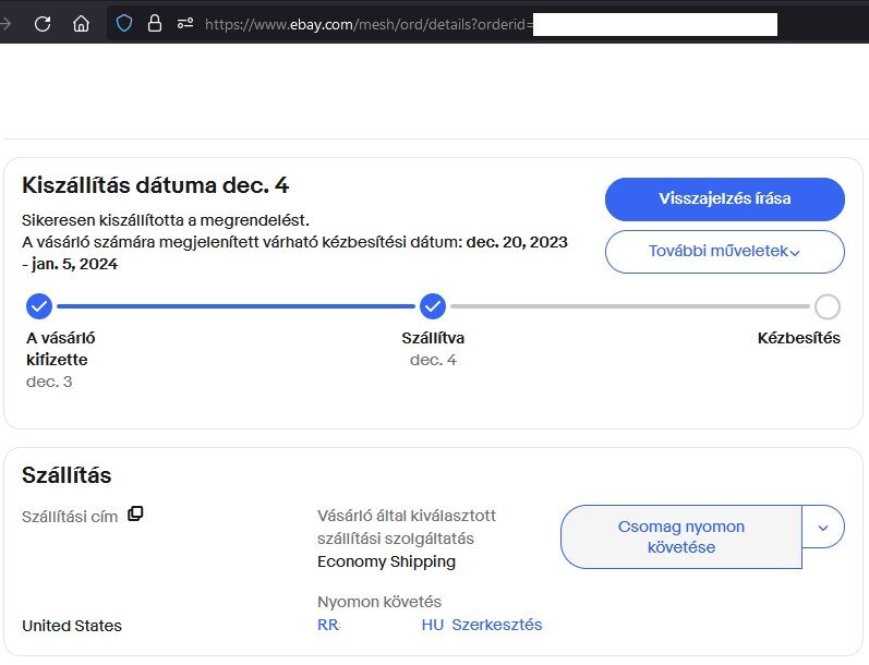 Sziasztok! Amerikába küldtem egy könyvet december elején, ajánlott, elsőbbségi, tértivel. Ennyit látok a nyomkövetésből. Amikor megkapta a vevő az eBay látni fogja? Aztán küldi a pénzt automatikusan, vagy a vevőnek kell jóváhagyni, és értékelni a rendelést?