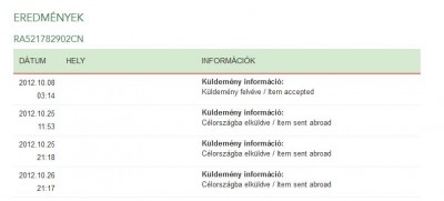 Elvileg úton van. Ez a tracking LK012804107US