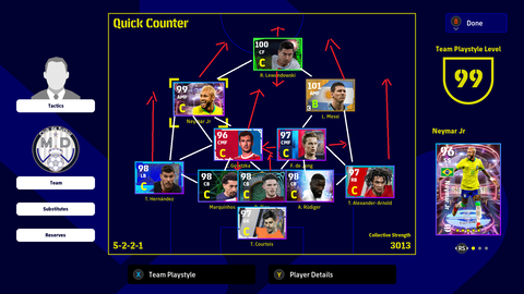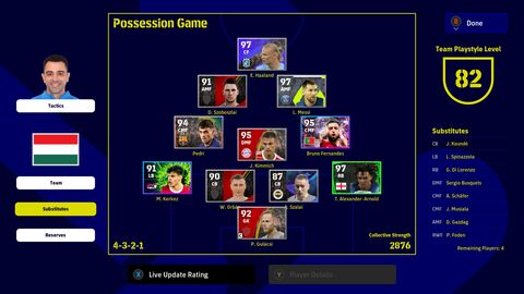 Defense-ben Messi counter target, Kimmich pedig deep-line.Szoboszlai helyett gyakran becserélem Fodent vagy Havertzet, ők azért sokkal jobbak ott, csak hát nem magyarok.
