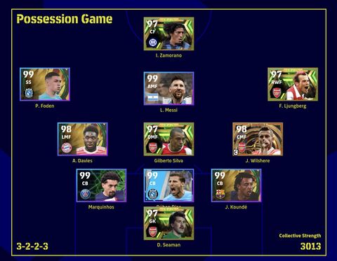 Amit játszani szeretnél ahhoz wide kellene nem posession. TAA mindenképpen Kondue helyett, és inkább Fernandest tenném padra, Messit Amf-be, Mbappe meg a bal kötő helyére.CFbe kellene egy erős, jól fejelő csatár Kane vagy Giroud. Meg Wilshere helyett Viera, hátul kevés lesz a 3 ha kapod a kontrát, széthúzzák 2 szélsővel és elfogynak akkora területen.