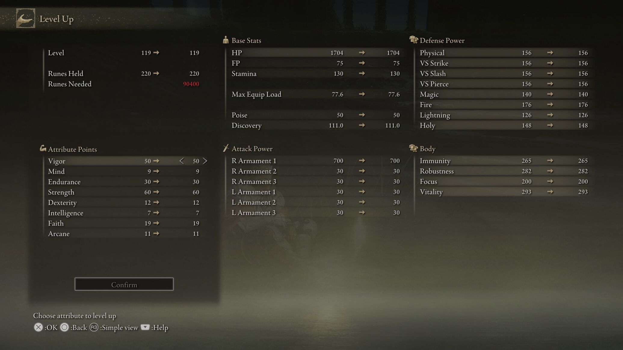Úgy érzem kezdem elérni a sima 2h Greatsword karakterem határait, jelenleg 60-as az str, ahogy látom már nem nagyon van értelme több pontot rá adni, mert csak 1-1 pontokkal növekszik a sebzés. Szóval ezek után már csak a fegyver upgrade szintek, amikkel érdemben ezt erősíteni tudom. Elkezdtem faith-re adni pontokat, az meg még kb 30-40 szint, mire mondjuk egy Golden Wov-t használni tudok.