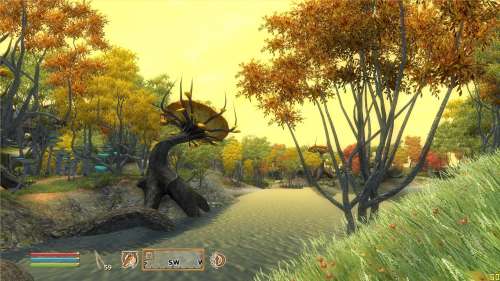 Illetve nyers összehasonlításnak nincs is értelme, hiszen Cyrodiil és Skyrim meglehetősen eltérő éghajlatú része Tamrielnek. Skyrimban sosem lehetne erdőket készíteni a röhögségesen remegő LEGO-fákból, Obliban meg ott a Speedtree. Ezzel együtt az Oblinak - pusztán a fenti okból kifolyólag is - lágyabb, színesebb, kicsit meseszerűbb megjelenése van, mint a szálkásabb, kopárabb, sziklás Skyrimnek. Az is fontos lehet, hogy némileg erősebb vas is kell alá, hiszen a motort nem a modokhoz írták, azok nem tökéletesen optimalizáltak.
