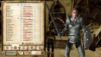 Két level up lett összehozva: 29 pontot sikerült szétosztanom. 1 pontról sajnos lecsúsztam, mert nem váltottam páncélt és az utolsó Blade Skill helyett (ami +5-re húzta volna Strenght-et) becsúszott egy Heavy Armor és elvitte.