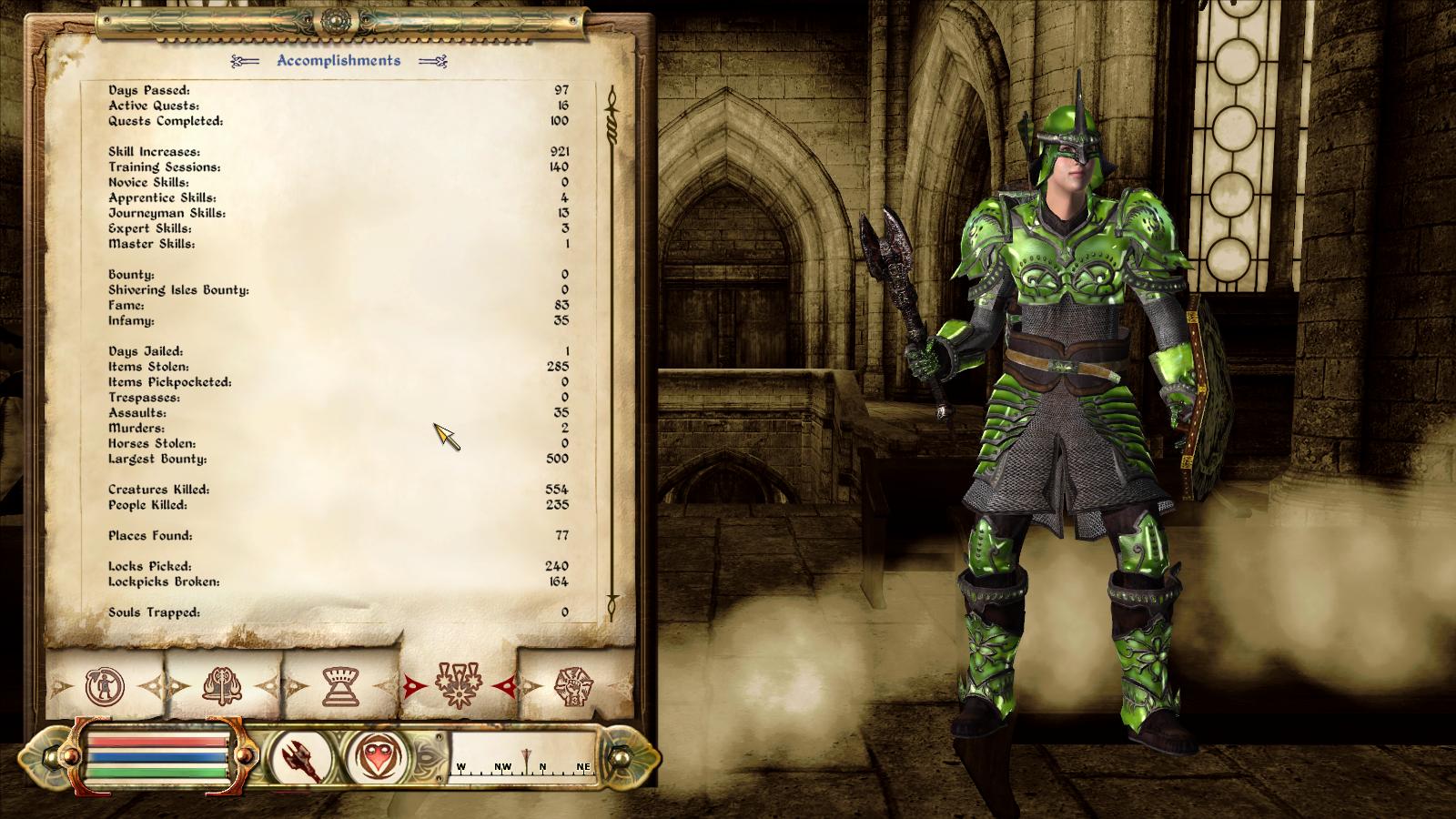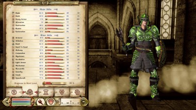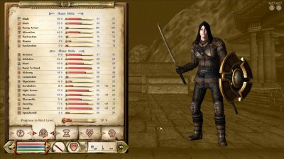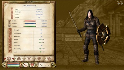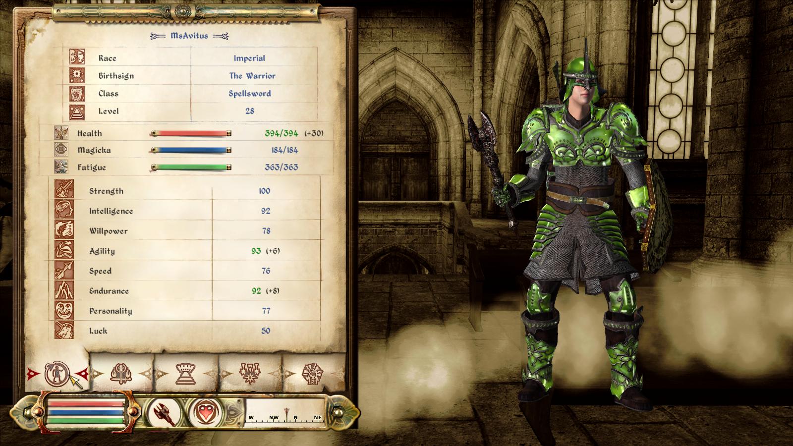 Egyedül azért azt húzom, mert mint láthatod a Strenght felment 100-ra, innentől a Blade-et csak arra használom, hogy "szintet lépjen" a karakternek úgy, hogy közben 3 tőle független Attrib-ot +5-re tudjak rakni. Kitolom a Mage meg Fighters Guildet, tuti megint fogok egy keveset bohóckodni ilyen "kényszerített szintlépésekkel".