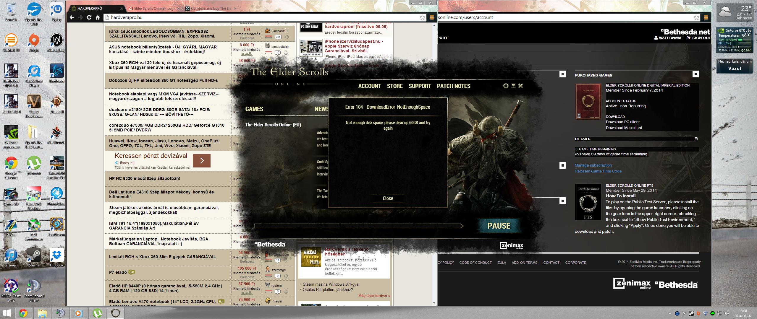 Gondoltam visszanézek a játékra, hogy mi változott az induláshoz képest, de már a kliens letöltésénél megakadtam. Pontosabban nem adja be az account.elderscrollsonline.com oldalt, hát...