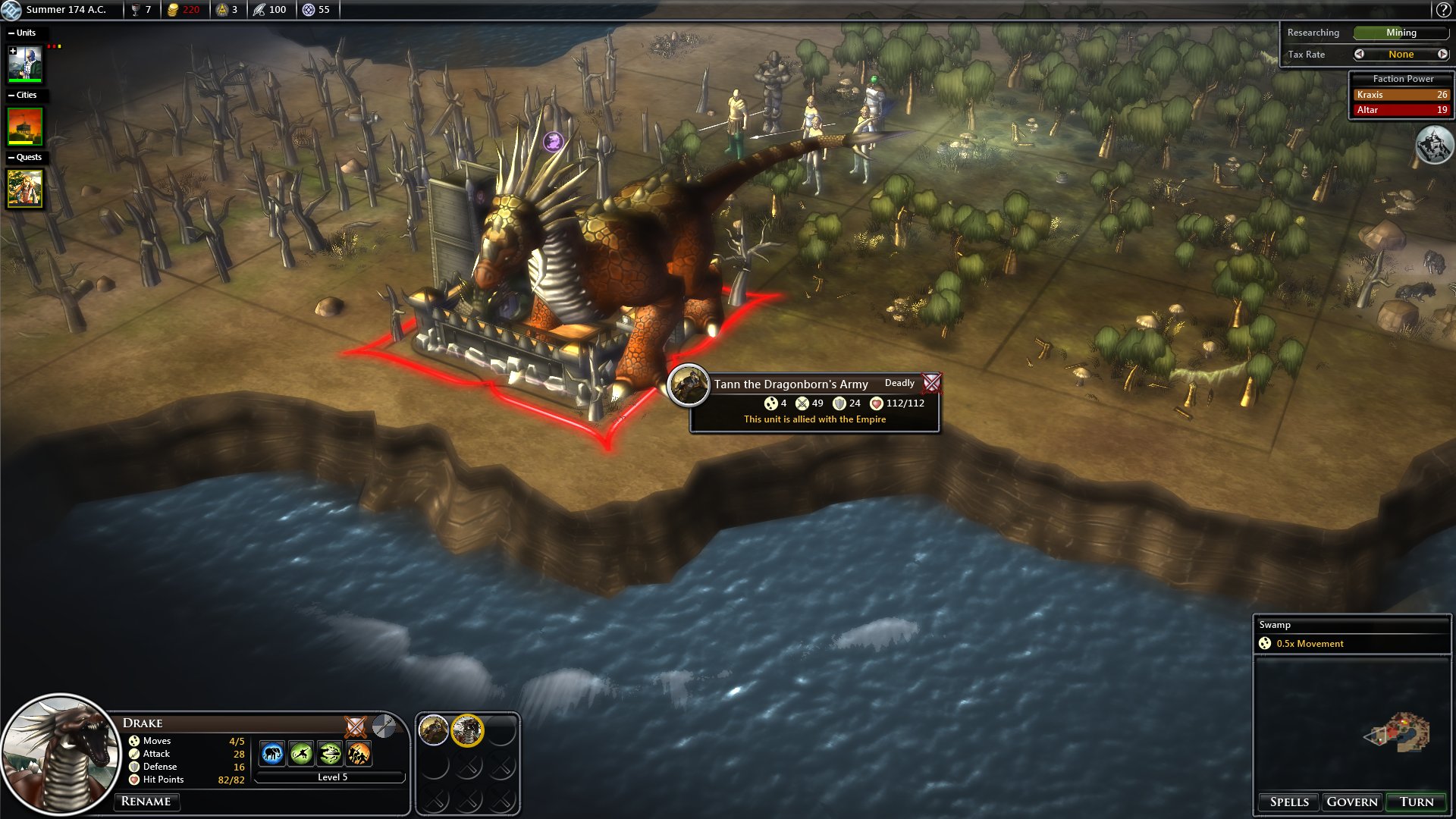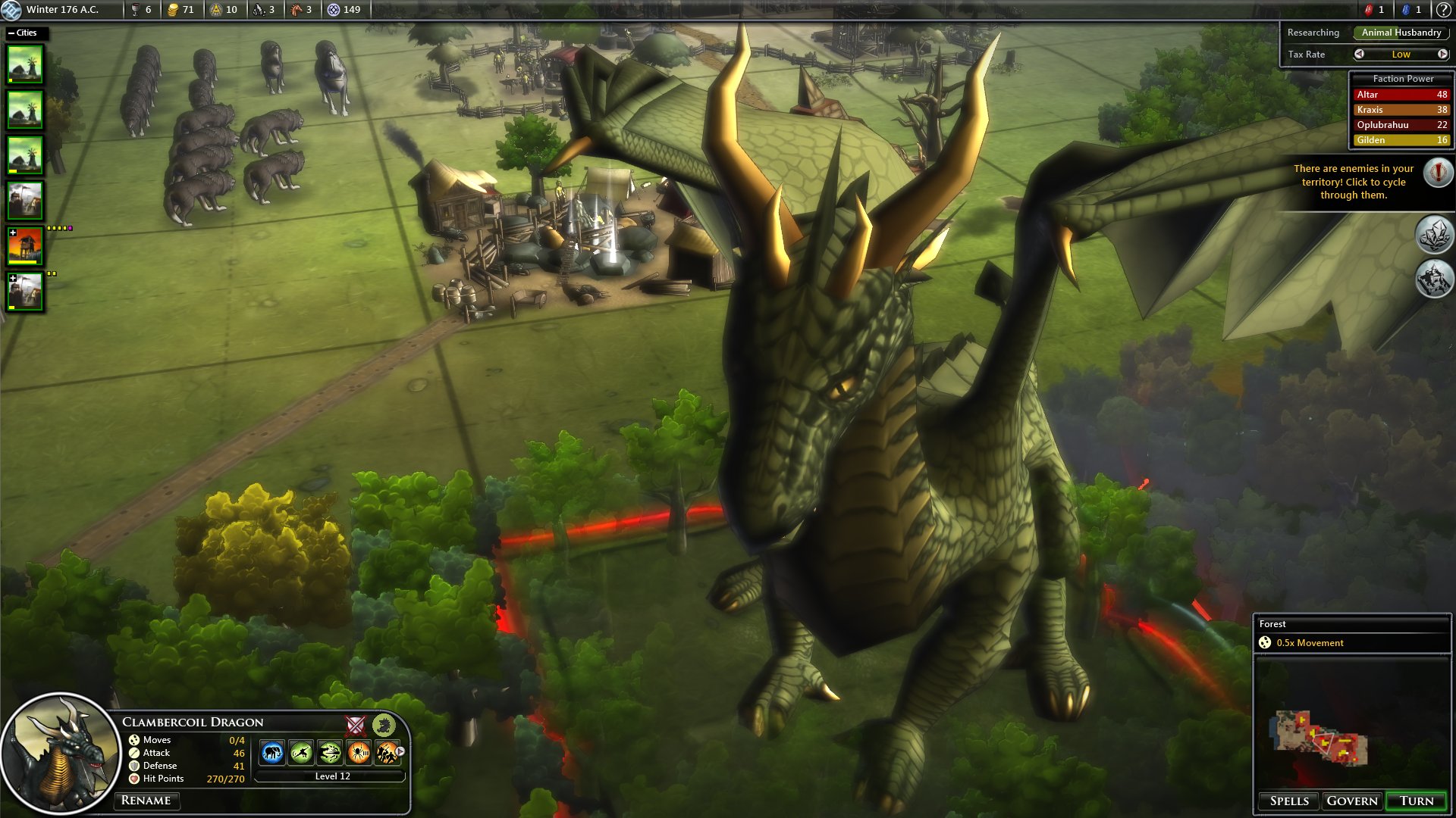 Sajnos az AI ugyanolyan gyenge mint a MoM-ban, az ellenfél nem védi kellőképpen a sovereign-jét és a védtelen városaimat sem zargatja.