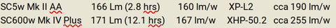 Mit néztél? XHP50.2 leddel, 171 lm fényáramnál 159 lm/W jött ki. Papírforma szerint a ZL SC5w 92 lm fényáramnál "csak" 153 lm / W hatásfokot hoz ki. Én azért választottam AA -s modellt, mert ez is tudja stabilan a 400 lm -t, apróbb, könnyebb, zsebbarát. Kezelésük ugyanaz, a Li-Ion -osak persze erősebbek, fényesebbek, hosszabb üzemidővel rendelkeznek. A ZL SC5w is 20 lm fényáramnál tudja a 20+ óra üzemidőt, nincs igazán szükségem a 60 órára 33 lm fényáramnál. És sajna itt is a 2300 lm -os SC600 -as, nem 4x fényesebb az 550 lm -os SC5w -től, hanem csak 2x. A SC5w stabilan tartja a 400 lm -t, míg a SC600 -as 705 lm fényáramnál még szabályoz.