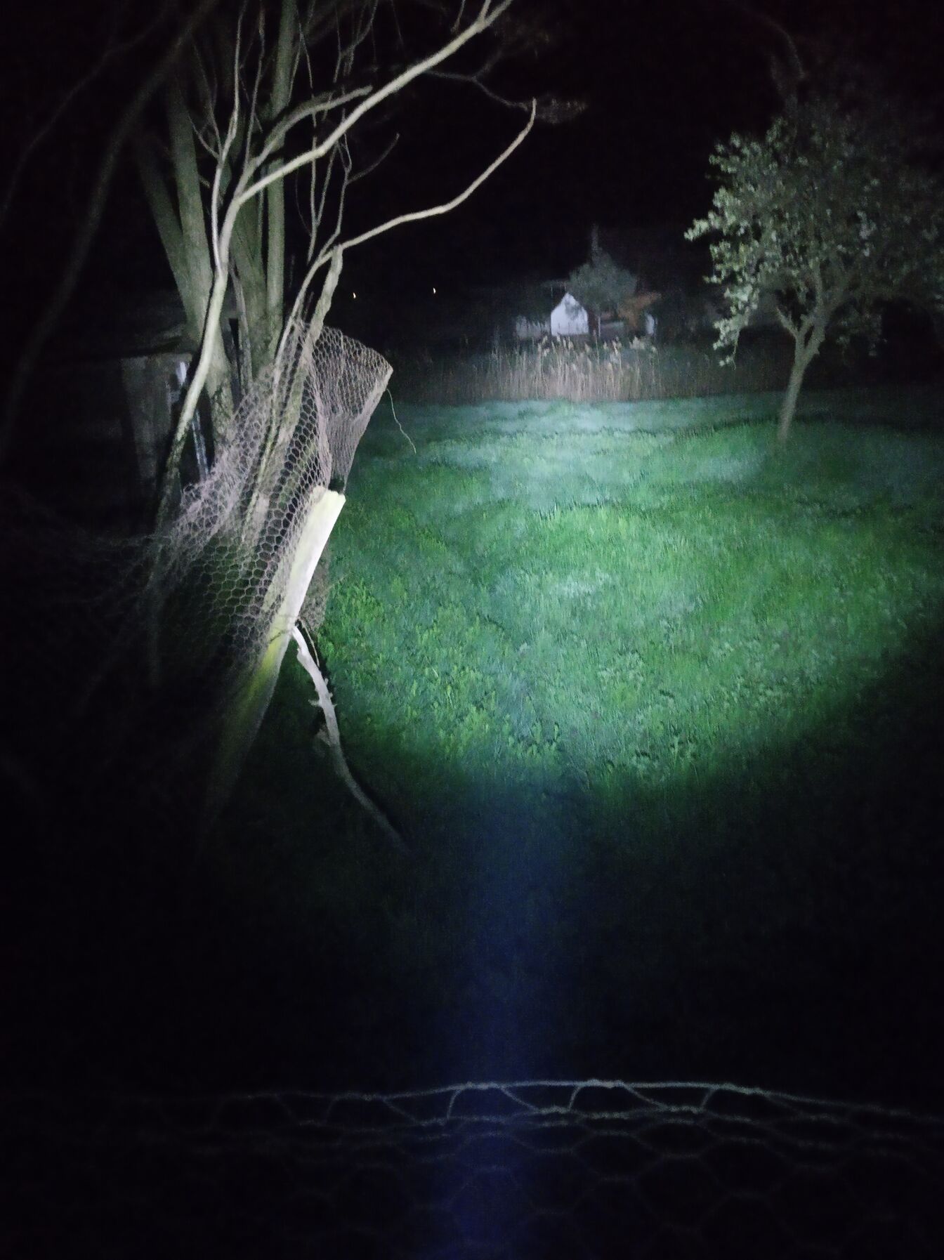 Az LH351D floodja, egységes terített fénye nagyon meggyőzött, amiben az orange peel is nagy segítséget adott. Többnyire turbo (800lm) módban használom a téli időszakban, amikor korán sötétedik, és lassan haladó autóból, ugyanis van egy kicsi akácosunk, amit előszeretettel gyérít kéretlenül a helyi "lakosság", így szúrópóba szerűen jártam ki csekkolni a fák meglétét a földút mellett (időnként a helyi szervekkel együtt, akiknek lézerkard szerű nagyméretű elemlámpái nagyon messzire, de szinte csak pontszerűen világítottak, így nagy szolgálatot tett a nagy fényerejű flood fény - itt jegyzem meg, az SP10S nagyon hamar, 5-10 perc után visszavett a turbo teljesítményből, holott papíron 2 óráig bírja ebben az üzemmódban, emiatt is keresnék nagyon, tartósabb teljesítményűt.)
