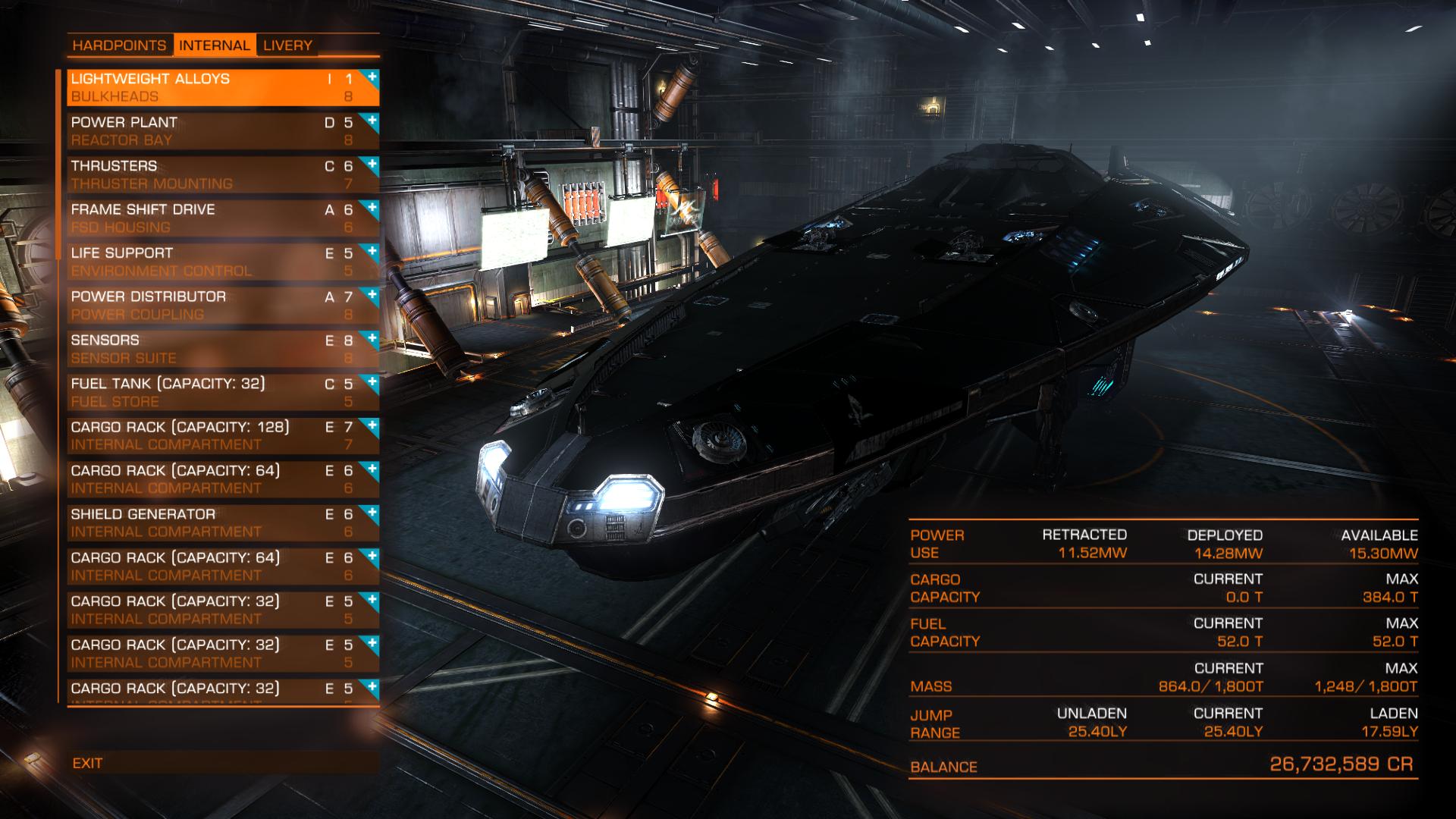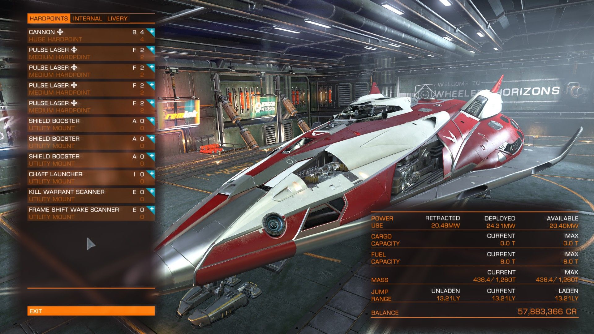 Én nagyon beleszerettem a ferdeláncba. És bár egy pár napra félre tettem, mert hiányzott a konda, most megint kihoztam a hangárból. 5 pulse lézerrel használom, 4 közepes, 1 nagy, és nagyon jó. Military páncélt érdemes rá tenni, brutál erős lesz tőle. Plusz van rajta 4A SCB, 4A scoop, 2A interdictor.
