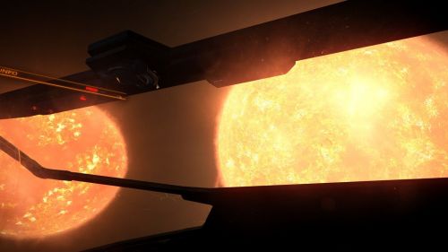 Sajnos 3-4 ugrásonként kénytelen vagyok megállni tankolni. Amig telik a tartály böngészem a csillagtérképet, és már többször előfordult, hogy egy kellemes női hang rántott vissza a valóságba: "Warning, taking heat damage!"