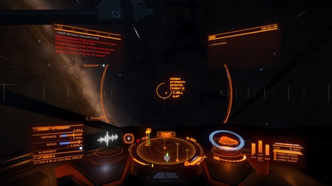 A halálközeli élmény az egy ún. Interdiction volt, ez egy folyamat, amely közben a támadódnak ugyanazt kell csinálni, mint neked, csak neki a te hajódat, neked viszont az Escape vectort kell középen tartanod lehetőleg minél jobban. A bal függőleges "csík" azt mutatja, hogy te mennyire jól csinálod, a jobb azt, hogy a támadód mennyire jól csinálja (az ő esélyei függenek az erre használt modulja - FSD Interdictor - erősségétől is), egy idő után mindenképpen véget ér a móka, mert a hibázások egyre jobban számítanak. Ha ő nyer, akkor kiestek Super Cruise módból a normál űrbe (itt lehet pl. harcolni), ha te, akkor csak ő esik ki.