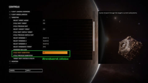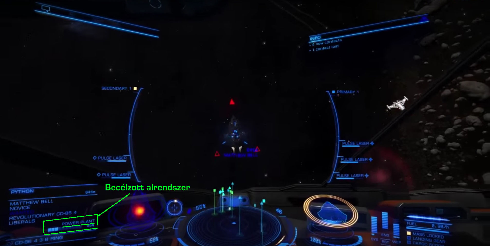 Itt láthatod a HUD-on, hogy épen melyik alrendszert célzod: