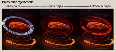 Minden pajzs "háromrétegű". A kék körök a pajzs állapotát mutatják: