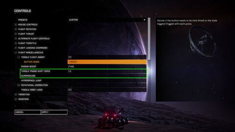 Segítség...a controls beállításoknál hol találom a super cruis mod meg a tér ugrás gombok hova vannak kiosztva...mert már rég állítottam át...de mint mondottam most megint resetelt minden beállítást ez a szutyok...