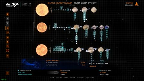 Megnéztem a long-range shuttle-t, de nem engedi a más rendszerbe, mondván hogy out of range?? Még a szomszédos rendszerhez is ezt mondja, ami csak 0.8 Ly távra van...