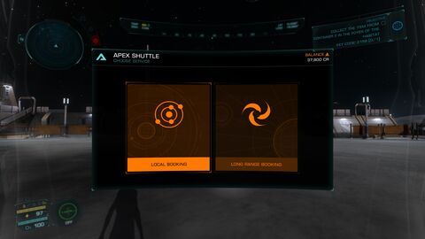 Ha kint vagy terepen, akkor megnyomod a Q-t (default kiosztás szerint) és kiválasztod az Apex Shuttle szolgáltatást: