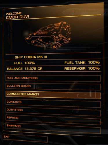 A leszállás komoly navigációval jár. Bedokkolás után bekerülsz a hangárba, ahonnan eléred a kereskedelmet(is). Az adott állomás piacterén kiválasztod a neked tetsző árút (minden állomáson változó a kínálat és az árak is) és felpakolod a hajódra. Ugyan itt tudod eladni a behozott árút is. Amit ITT látsz az mind ingame felvétel