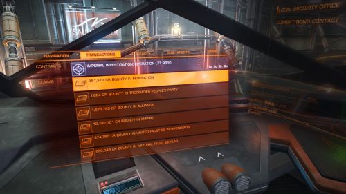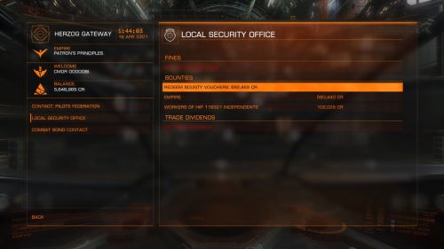 Kicsit elegem lett ebből a redvás CG-ből és a RES-sel szarakodással. Látom mekkora összegeket lőttök össze, nekem jönnek Soloban a puruttya SW-k, Adderek, nagyjából 5-10eCr bounty/db. Próbáltam trükközni, aztán sok ki-be logolás után végre jön egy Clipper az meg nekem durrant a harc hevében izomból és hull rögtön 5%... Sebaj, megléptem, repair és vissza. Itt megint semmi jó ideig, akkor menjünk hát Openbe. Ott már biztatóbb a helyzet, de hiába lövöm ki a hajókat nem írja jóvá a bountyt... a harmadik után már k**va ideges voltam ezért nem meglepő módon el is találtam egy keresztbe elrepülő nem wanted Vulture-t is. Nyilván az egész rendszer engem lőtt rögtön a párszázas vérdíjam miatt, hiszen egy 100000 Cr-es Anaconda senkinek sem kell, inkább az én Viperem.
