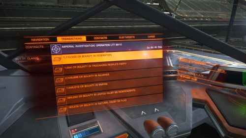 ooooobi(#9007), USS-t, Undefinied Signal Source-t keress, vagy menj egy Nav Beaconhöz, esetleg RES-hez, ott is lehet kalózt lőni, és 1.2 óta azt is elszámolja már a küldi, nem csak az USS-t mint régen. Moduloknál azok legyenek kisebb prioritáson, amiket harc közben nem használsz, pl. cargo scoop, frame shift drive, frame shift drive interdictor, fuel scoop, stb. Life support, pajzs, fegyverek, hajtómű nem kapcsolhatnak le! Úgy kell sakkozni az árammal és hajóra telepített modulokkal, hogy beleférj az áram keretbe.