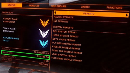 A fentihez képest lenulláztam a mentésem, tehát ez friss (az Options-be volt lehetőség a commaander törlésére a mentésekkel együtt, gondolom, hogy töröltem és tiszta lappal kezdtem, sehol sem kerülök majd hátrányba, igaz? Mivel beépített funkció, így nem gondolnám mondjuk.)Szóval Cmdr. core2-ként kereskedek jobbra-balra, gondoltam megjegyzem, ha gyűjtök elég casht és kilépek az open world-be.
