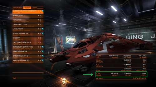 Amikor elvállalsz egy szállítós küldetést, mindig figyelni kell a célállomás távolságát. Az elvállaláskor az aktuális raktered és ugrótávolságod alapján kalkulál a program. Lehet, hogy üres raktérrel még elérted volna a célállomást, de amint bekerült az áru a rakteredbe, a plusz súly miatt lecsökkent az ugrótávod és pont nem éred már el. Ezt úgy tudod elkerülni, hogy megnézed a hajód üres és maximum terheléses ugrótávolságát. Innentől már egyből látod, hogy mit szabad elvállalni és mit nem.