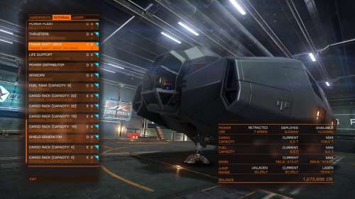 Az a baj, hogy Cobrával megőszülsz mire összejön egy nagyobb hajóravaló. Egy jól felszerelt T6 megtud lépni a támadók elől. Maxos FSD és D-s modulok a könnyítés miatt. Természetesen a Shield Generatort nem cseréljük le cargora és a biztonság kedvéért pakolunk rá két erős Beam lézert! Ettől függetlenül a harc csak végső megoldás T6 esetében. Még így is összejön a 104T cargo kapacitás, megfelelő ugrótávval + pajzzsal + fegyverekkel: