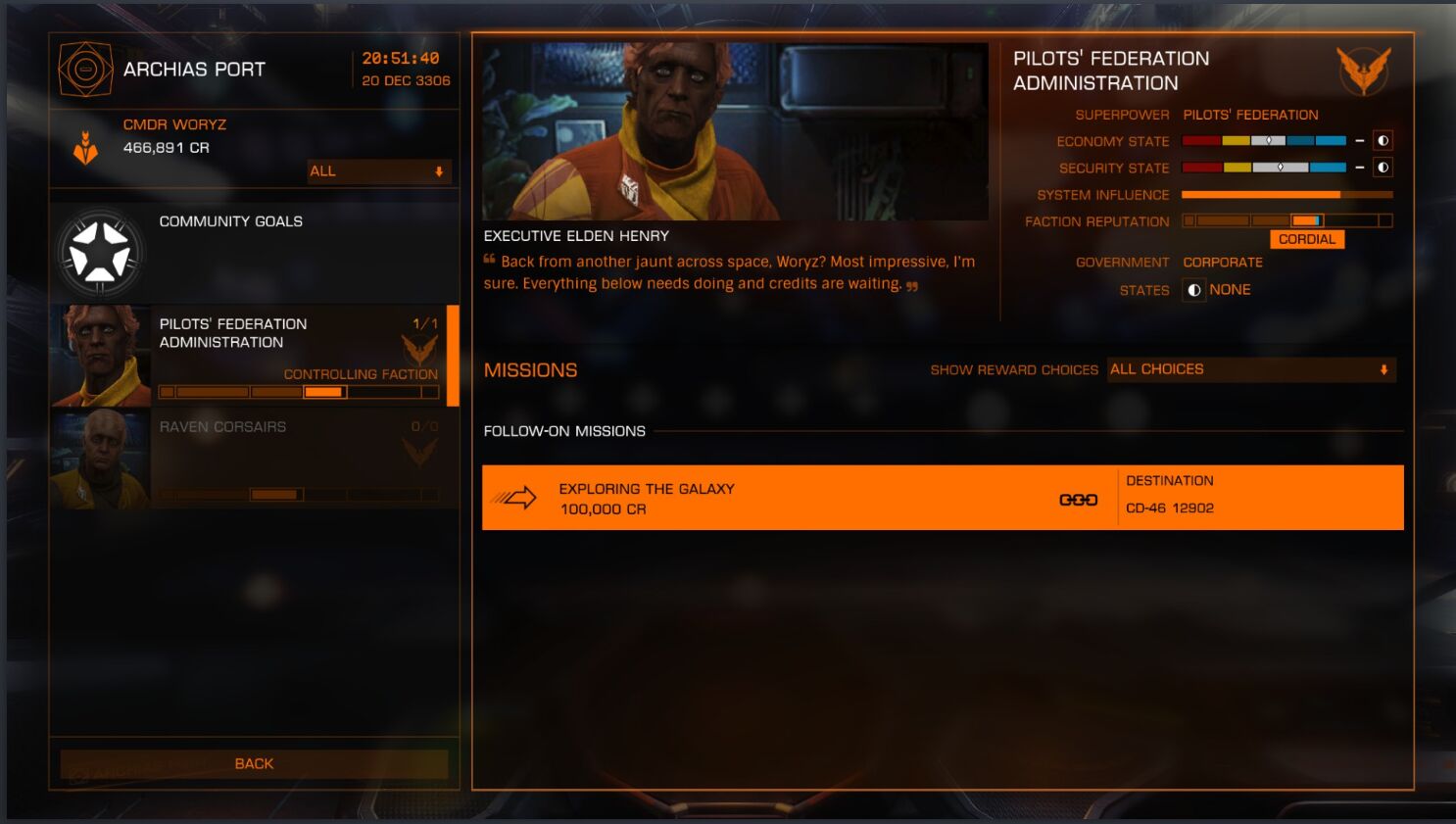 Kicsit elkezdtem fejleszteni (inkább azt mondom, új modulokat vásároltam) a hajóm, (valszeg nagyon béna vagyok, de nem találom, hogy hol lehet utaskabint venni (lehet, hogy nincsen minden állomáson?) ) felvettem egy - pár szállító küldetést (ahol az anyagot ők adják), erre kaptam valakitől egy üzenetet, hogy kell neki a rakományom... Valamint amikor a rendszerben haladtam FSD-vel megjelent valami "escape vector" kékkel... Arra gyanakszom, hogy valakinek valóban kellett a rakományom.