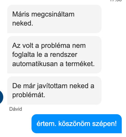 De ez egy dolog, akkor válaszoljon az emailre h náluk csak ez van és ha nem tetszik akkor így jártál. De nem írnak, nem hívnak, nem jeleznek mikorra jönnek, a futár egy bunkó, nem ír nem hív az se csak amikor már itt áll a ház előtt.
