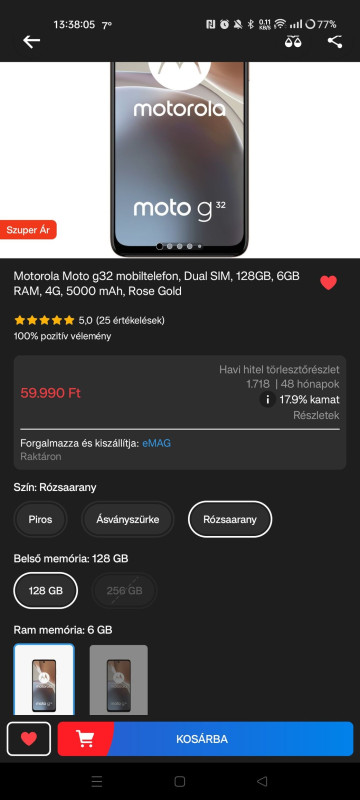 Viszont ezt a telót konkrétan 48 ezerért láttam csak más színben, ajándékok nélkül.