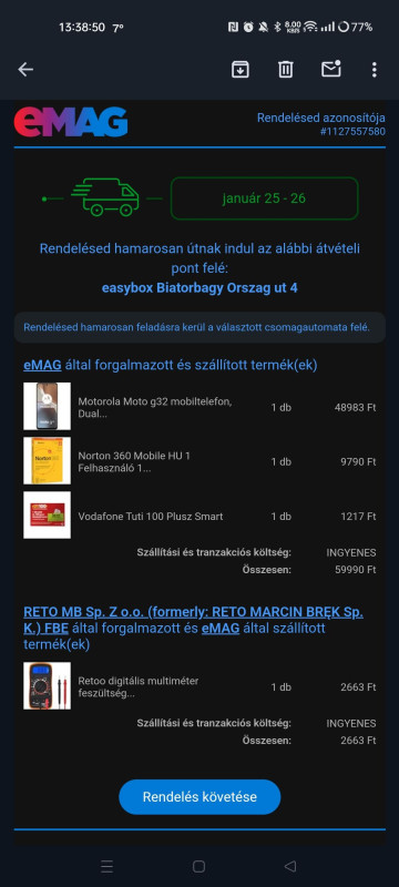 Sőt nekem még az sem jelenik meg, hogy kiszállították, pedig az már a két ünnep közt megtörtént...