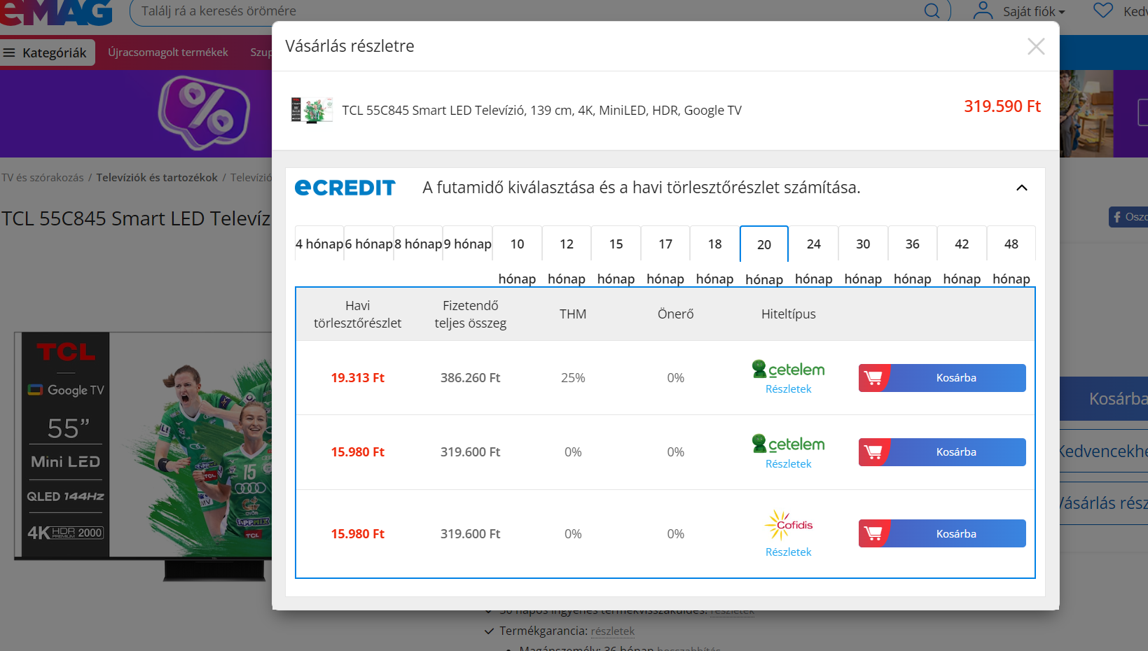 Rendelni szerettem volna egy tv-t, de a fizetésnél nem jön fel a 0%-os ajánlat, csak a klasszikus hitelkonstrukciók.