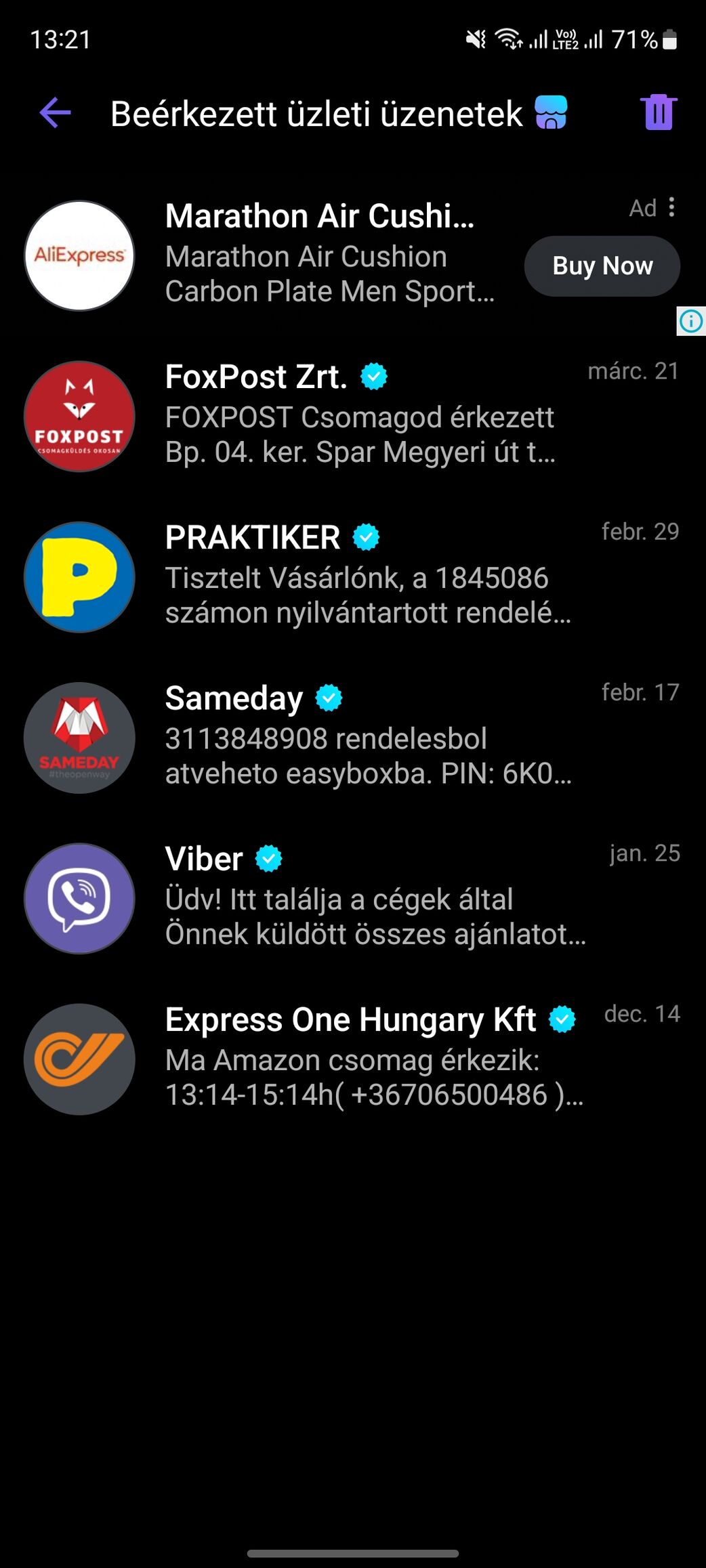 SMS üzenetben kapott PIN kód"De valójában amennyiben fel van telepítve a VIBER- akkor oda küldik a szerencsétlen kódot és SEMMILYEN más platformon nem kapod azt meg.(nem is írják h ott várd) Ezt egy csomagnál az automatába érkezés után két héttel vettem csak észre