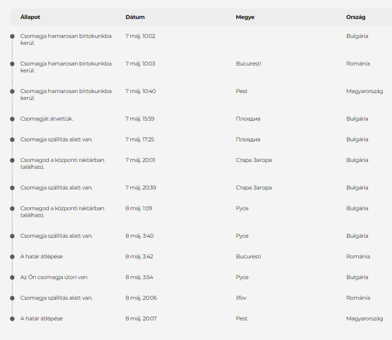 Rendelésem több országot megjárt már, Bp-ről elvitték Bulgáriába, majd Romániába, most már Budapestem van újra! Szerintetek hová fogják vinni legközelebb? Esetleg vissza Bulgáriába?