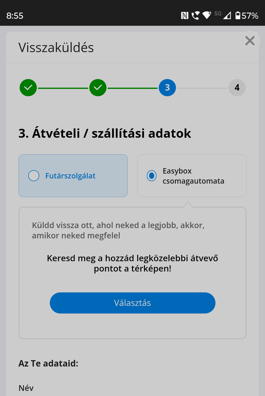 Na az én easyboxos visszaküldésem kérés nélkül átállt futárosra másfél héttel későbbi felvételi időponttal