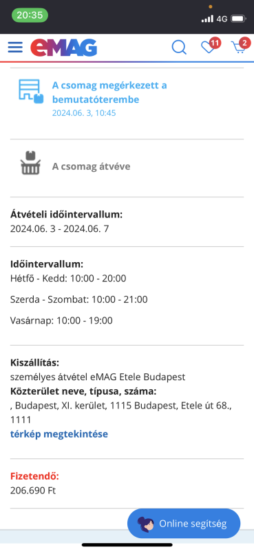 Az Emagos ügyintéző ugyanazt mondja, mint eddig, ma estig biztos odaér, nézzem a nyomkövetést (nem ért oda). A sameday 2*30 perc hívásvárakoztatás után bontotta a kapcsolatot.