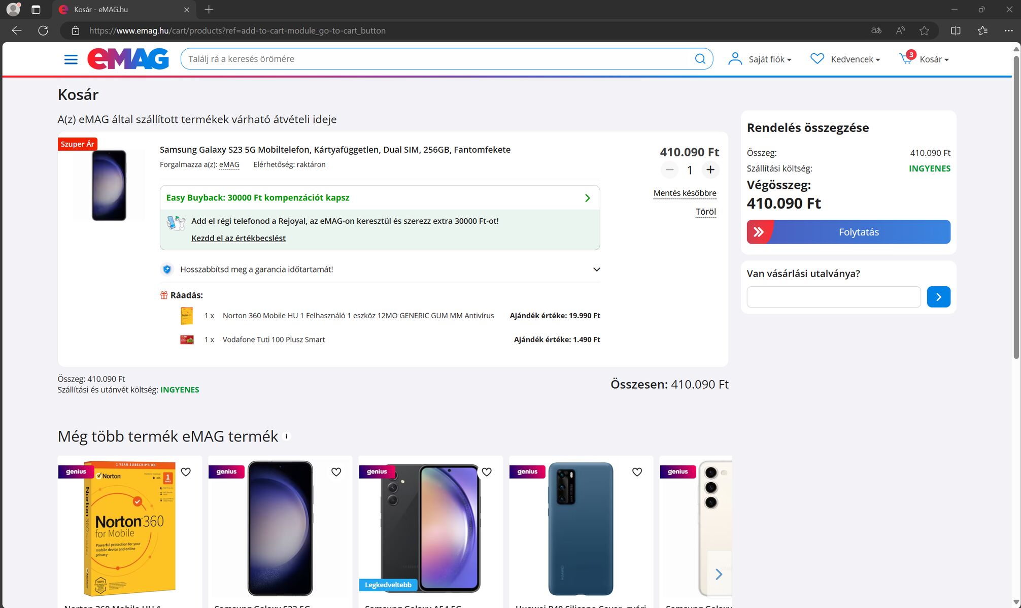 Elvileg "Easy Buyback: 70000 Ft kompenázciót kapsz" egy S24 Ultra-ra, az adott telefon amit eladnék (rejoy-nak viszik ugyebár) az 60 ezret ér.