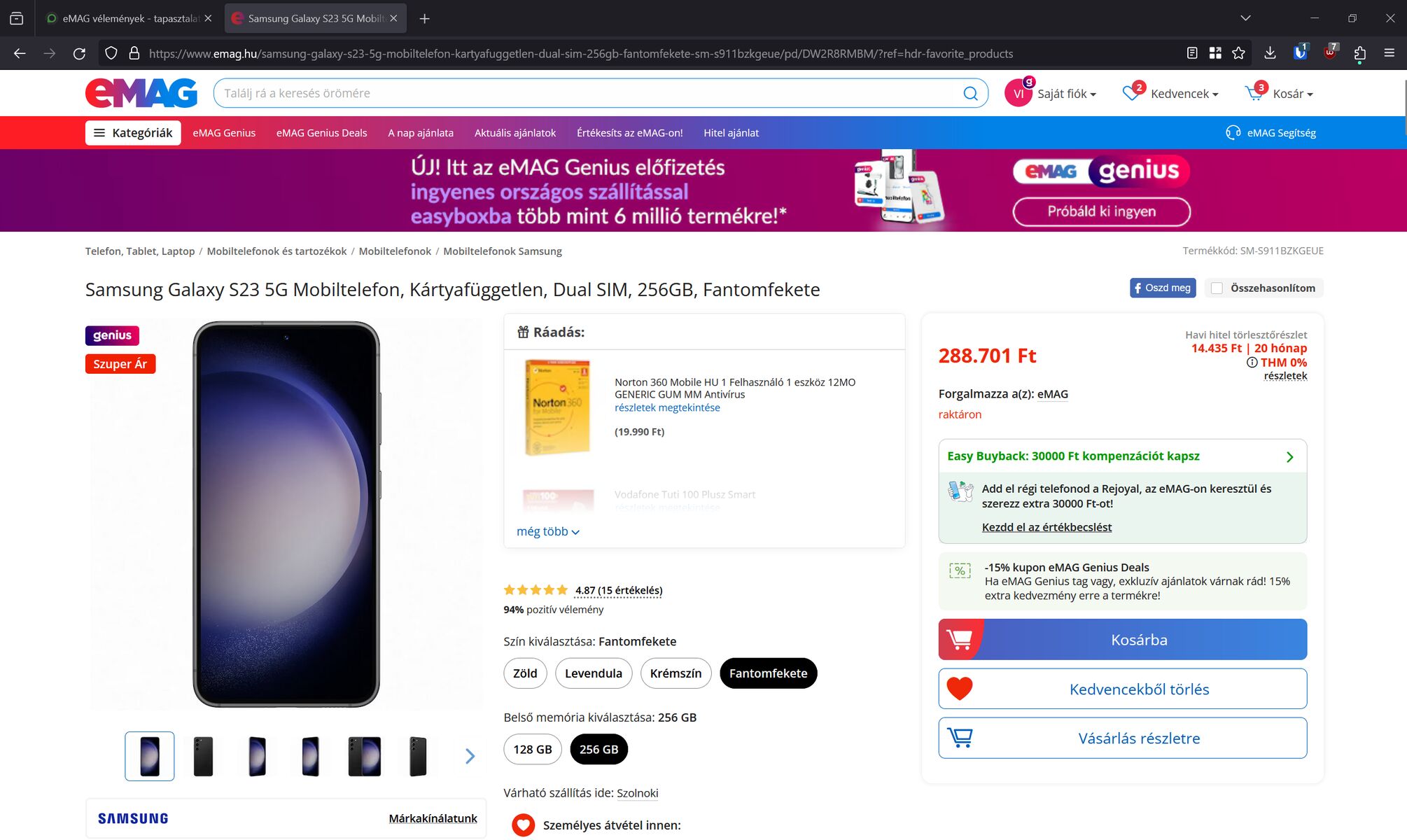 Megérős lenne az S24 Ultra 256gb, genius 15% kedvezménnyel 505-ről 429 + 70e "kompenzáció" + a 60e forint telóérték = 300e