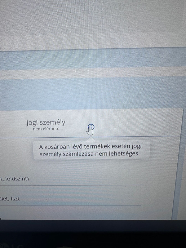 Ma rendeltem volna céges számlára 2 db min-PC-t. (Eddig már vettem számlára ezt a pc-t.)Kosárba raktam, majd a számlázási adatoknál azt írja, hogy jogi személy - nem elérhető.