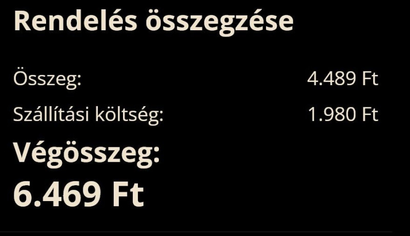 A pontos összeget pedig a szállítási mód kiválasztása után fogod látni, ha az megfelel akkor megrendeled.