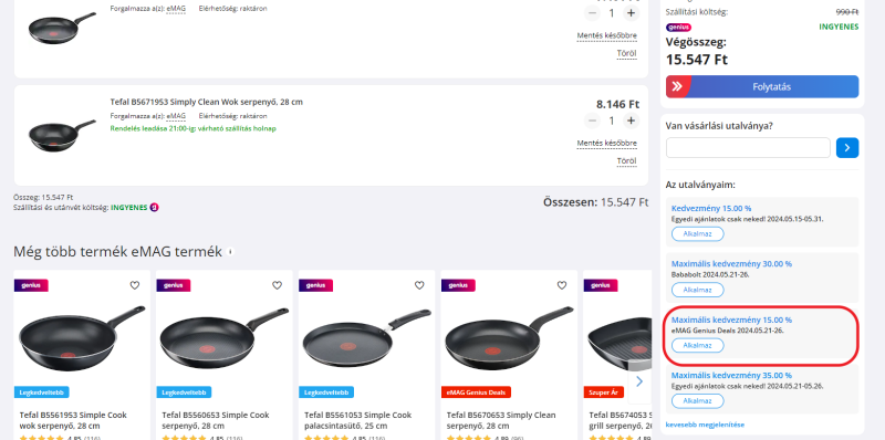 Egyébként azonnalli kuponkedvezményként működik a genius csökkentést, viszont nem aktiválja magát automatikusan! Itt külön rá kell nyomni (nekem a 'még több' alá el volt dugva):