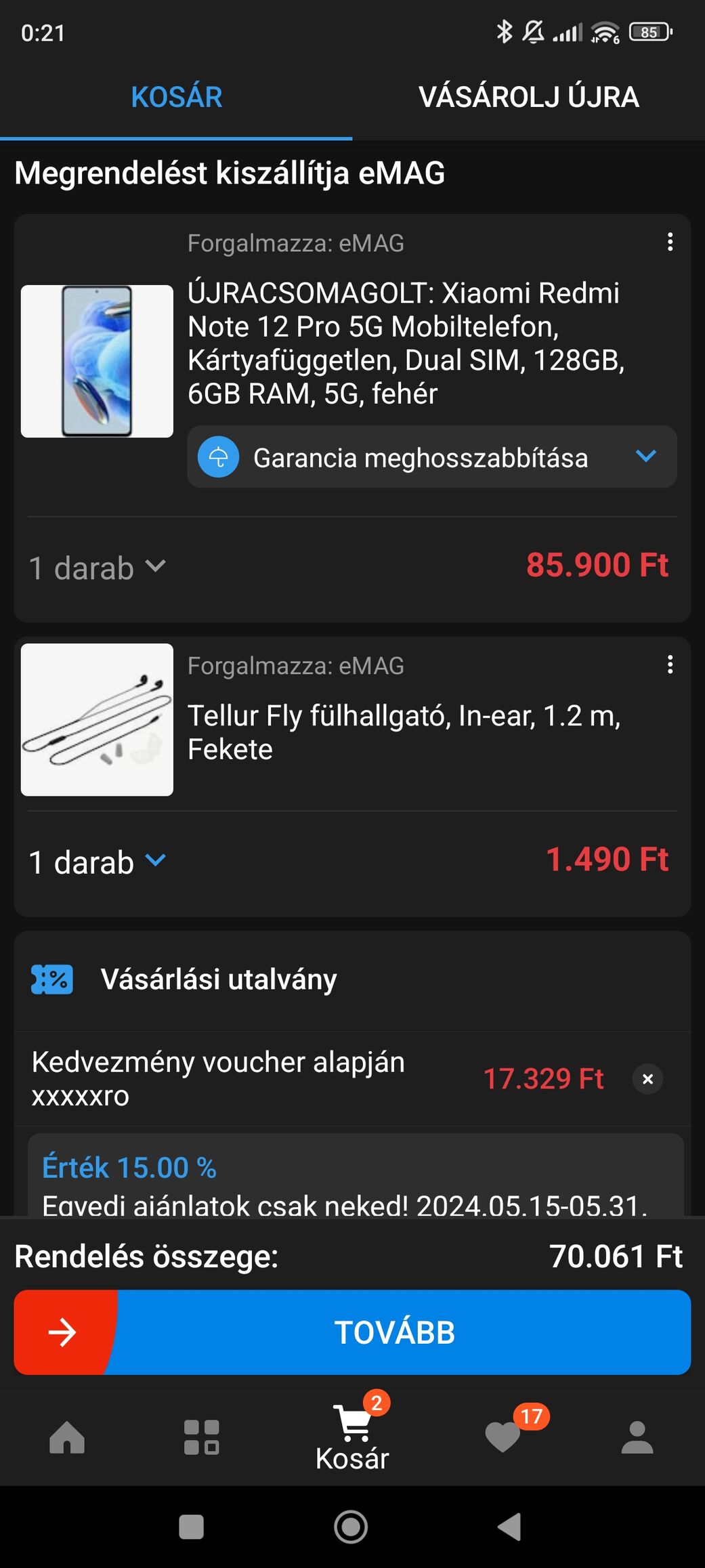 Lehet, hogy több mindenki értékesíti a terméket és nem emag forgalmazású van benne a kosaradban. Majd nézz rá vagy ha adsz linket megnézzük mi is szívesen.