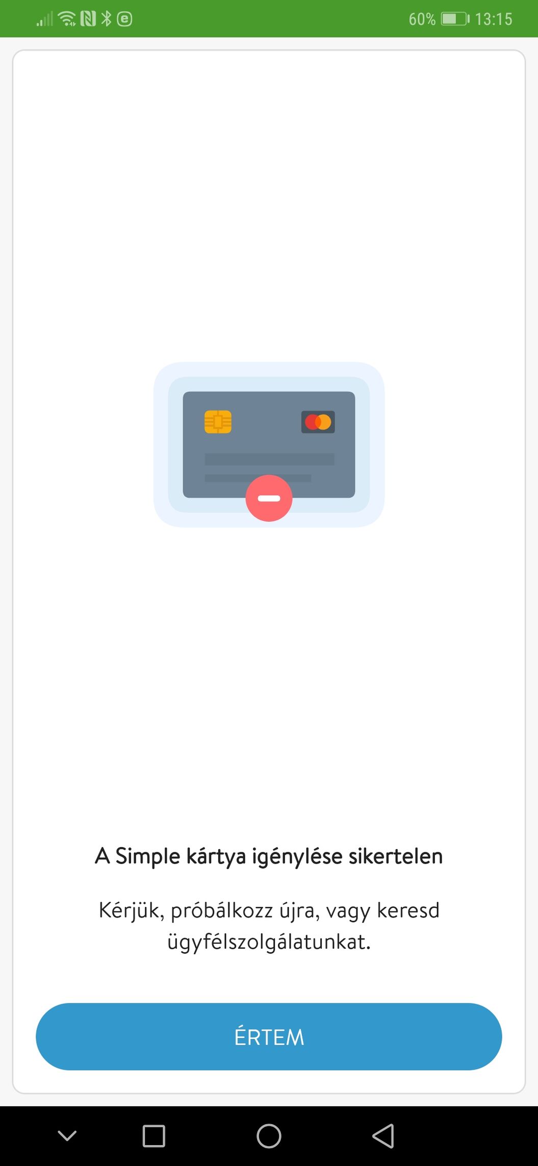 Nekem a Pennyben sem ment. Most annyit csináltam, hogy töröltem az alkalmazás adatokat. 1 órán keresztül hülyeségeket írt, nem láttam az egyenlegem, olyasmit írt, hogy nem megfelelő kártya, meg simple szolgáltatás nem elérhető, aktiváljam újra a kártyát, stb.