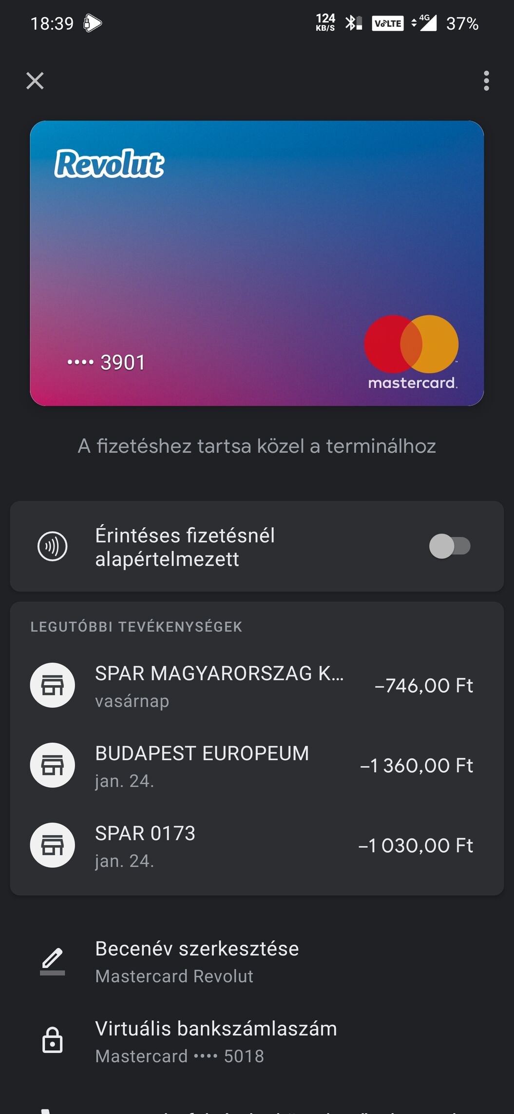 Mert ugye Revolut-nál is engedte, hogy hozzáadjam a kártyám a GPay-hez, és úgy rémlik, használhattam is volna, kivéve NFC-vel. Emiatt azonnal töröltem is.