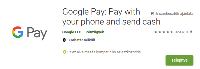 Neked még a play áruház is felajánlja a gpay-t, és ha egy pakli magyar kártyát regisztrálsz még arra is megy az érintéses fizetés...