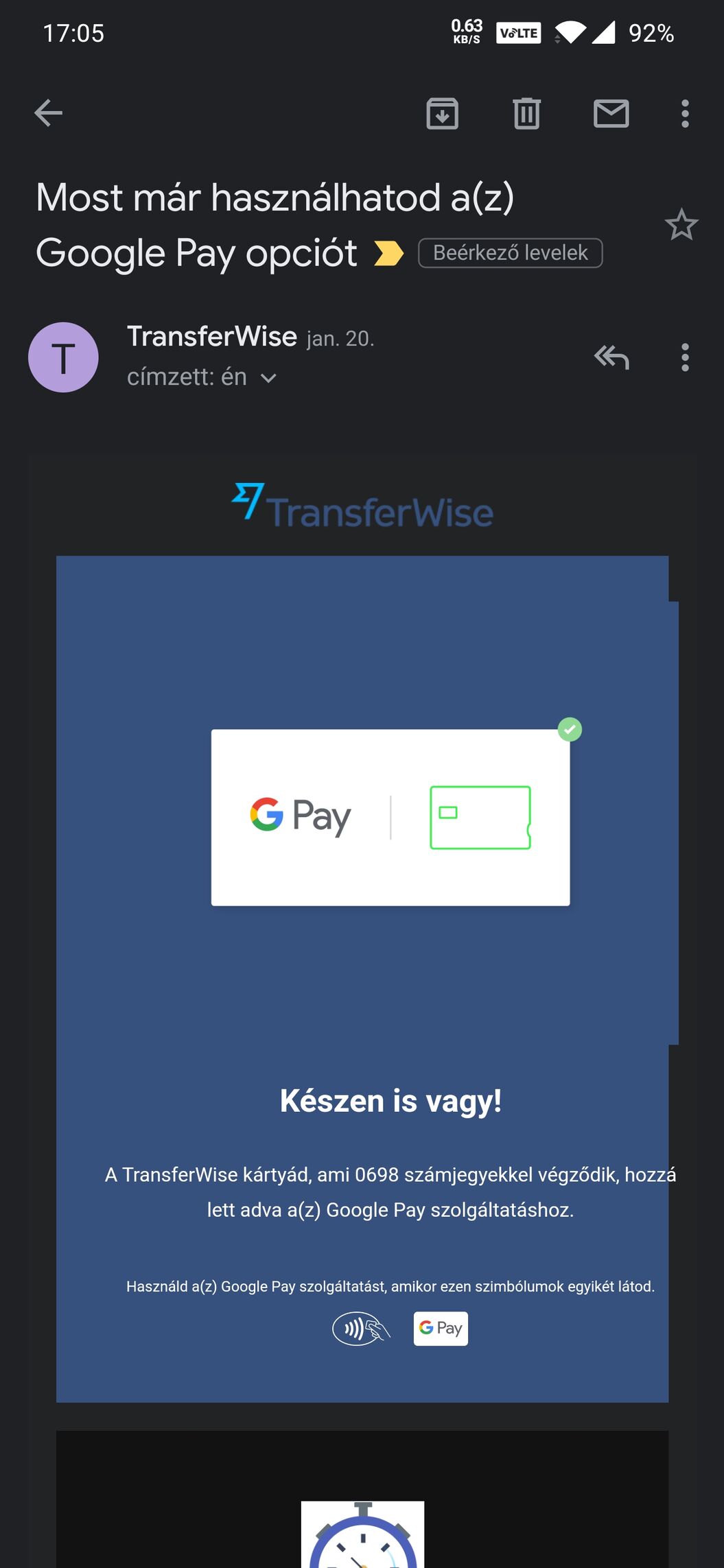 Ma érkezett meg a múlthéten igényelt Transferwise kártyám és azonnal elfogadta a GPay.