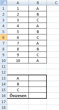 Milyen képlettel tudom megmondani neki, hogy adja össze az 1. oszlop azon értékeit, ahol pl. A adatot talál a 2. oszlopban. (jelen esetben 22-t szeretnék eredményül kapni)