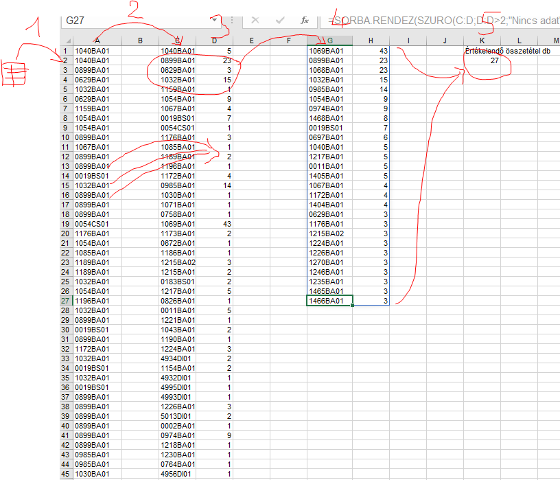 - Segéd K2-ben megszámolom, hogy mennyi a kiértékelendő receptek száma